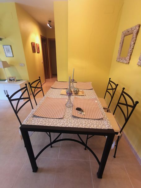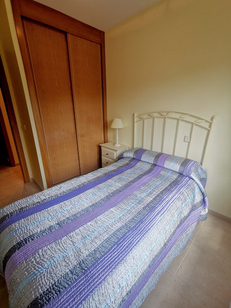 Este apartamento próximo al parque el Rasero consta de 3 habitaciones, la principal con una cama de matrimonio de 150cm y baño propio, la segunda con una cama de 110cm, y la última con una cama individual de 90cm. Tiene cocina completa y un salón con vistas a la piscina comunitaria. También cuenta con un confortable baño con ducha para dar servicio a las otras dos habitaciones.